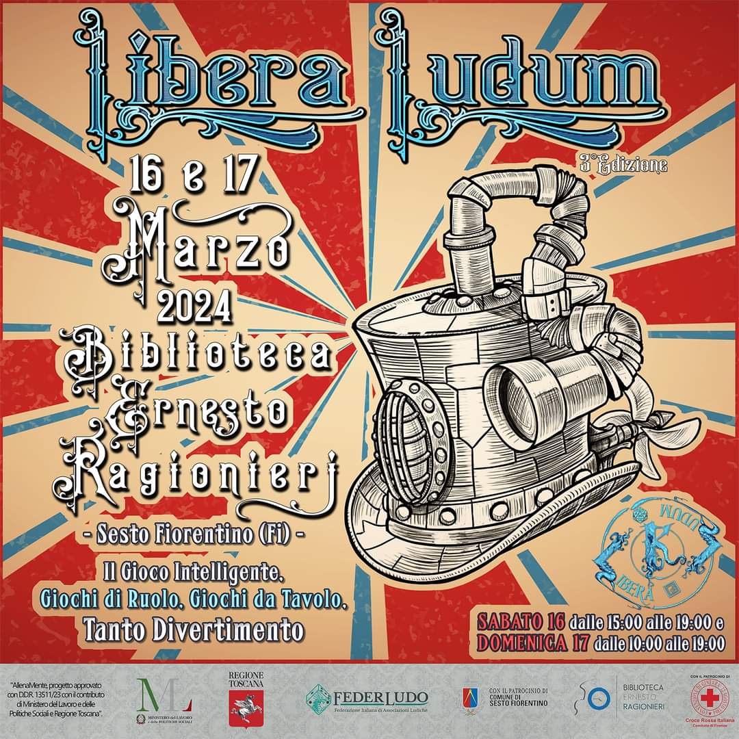 È in arrivo la terza edizione di Libera Ludum, la manifestazione dedicata a giochi da tavolo e giochi di ruolo organizzata dall’associazione Kraken Aps, patrocinata dal Comune di Sesto Fiorentino, Federludo e con il contributo di Ministero del Lavoro e delle Politiche Sociali e Regione Toscana.