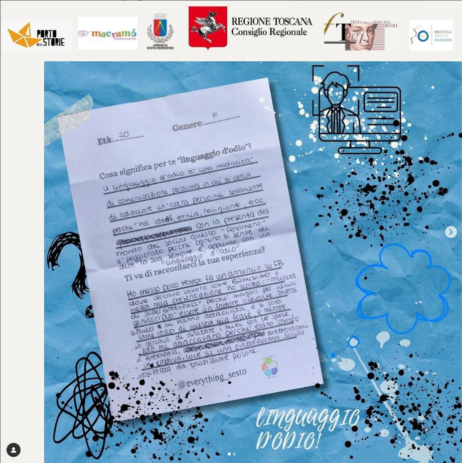 Qui di seguito alcuni dei contributi pubblicati sul profilo Instagram Everything_sesto per il progetto Parole contro l'odio: