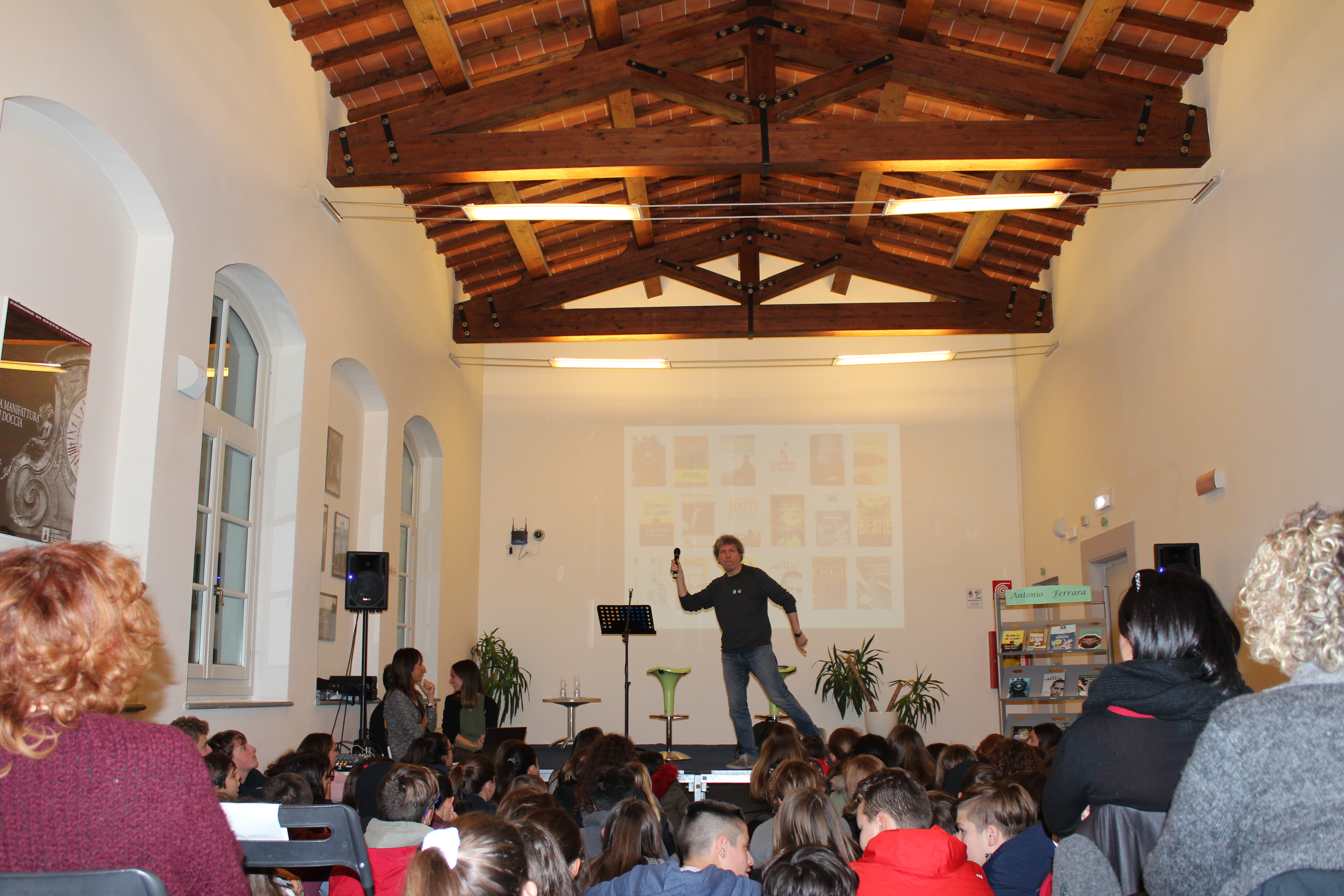 Giovedì 30 Novembre presso la sala Luzi della Biblioteca si è tenuto l’evento conclusivo del progetto Un’estate tutta da leggere. Si è trattato ancora una volta di un bel pomeriggio di festa. Erano presenti circa 300 persone. L’ospite della serata è stato Antonio Ferrara, un autore tra i più importanti della letteratura per ragazzi e giovani lettori, che ha dialogato coi ragazzi partendo dal suo “Mangiare la paura” e raccontando la propria esperienza di narratore.