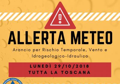 Attenzione: fino a mezzanotte di domani, lunedì 29 ottobre 2018, potranno concretizzarsi in TUTTA LA TOSCANA i seguenti rischi: