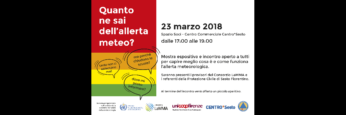 Il Servizio comunale di Protezione Civile di Sesto Fiorentino, il Consorzio LaMMA, il Centro Commerciale Centro*Sesto e la Sezione Soci Coop Sesto F.no-Calenzano insieme per rispondere a tutti i dubbi legati alle Previsioni Meteo e alle successive Allerte Meteo.