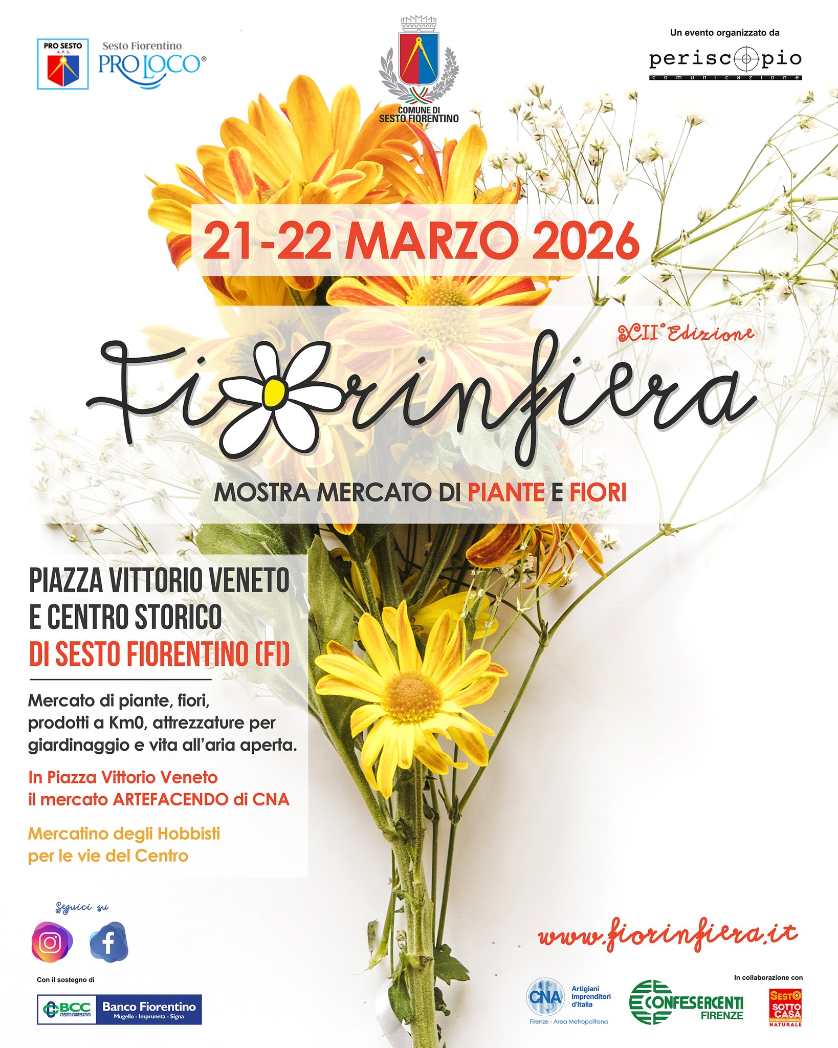 Fiorinfiera 2026Mostra mercato di piante e fiori Dodicesima edizione, Sabato 21 e domenica 22 marzo.Condividi Facebook Twitter Linkedin Telegram WhatsappVedi azioni Scarica Stampa E-mailTipo di eventoEvento culturaleImagefiorinfiera_2025 Cos'è A chi è rivolto Tutti Luogo Palazzo ComunalePiazza Vittorio Veneto, 1 - 50019 Sesto FiorentinoLeggi tuttoa proposito di Palazzo Comunale202621Mar 08:00 - Inizio evento 202622Mar 17:00 - Fine evento Costo gratuito Allegati Document Fiorinfiera 2026 (274.07 KB) Contatti Call Center 055 055